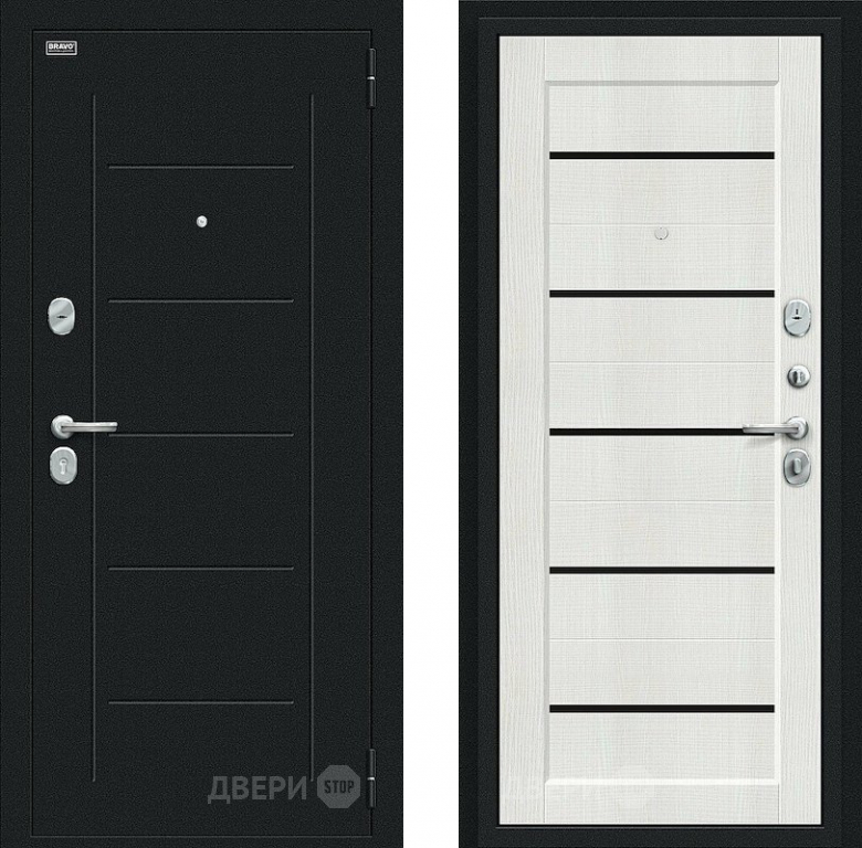 Входная металлическая Дверь Bravo Борн Букле черное/Bianco Veralinga в Бронницах 860х2050 мм