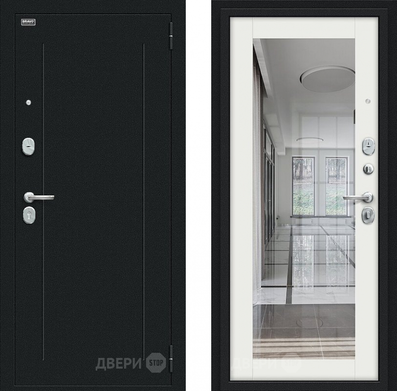 Входная металлическая Дверь Bravo Флэш Букле черное/Bianco Veralinga в Бронницах 860х2050 мм