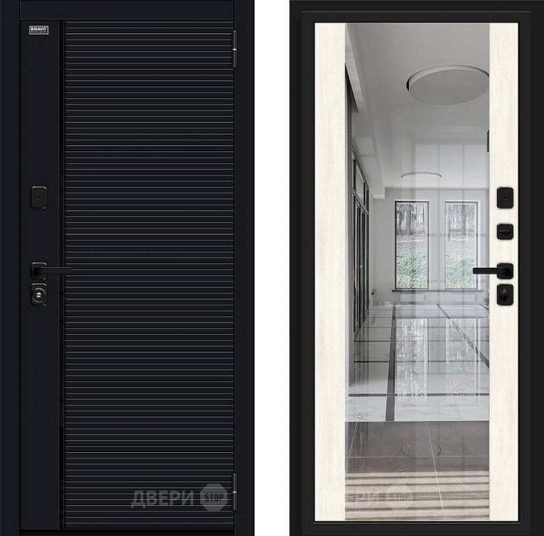 Входная металлическая Дверь Bravo Лайнер-3 Total Black/Nordic Oak в Бронницах 860х2050 мм
