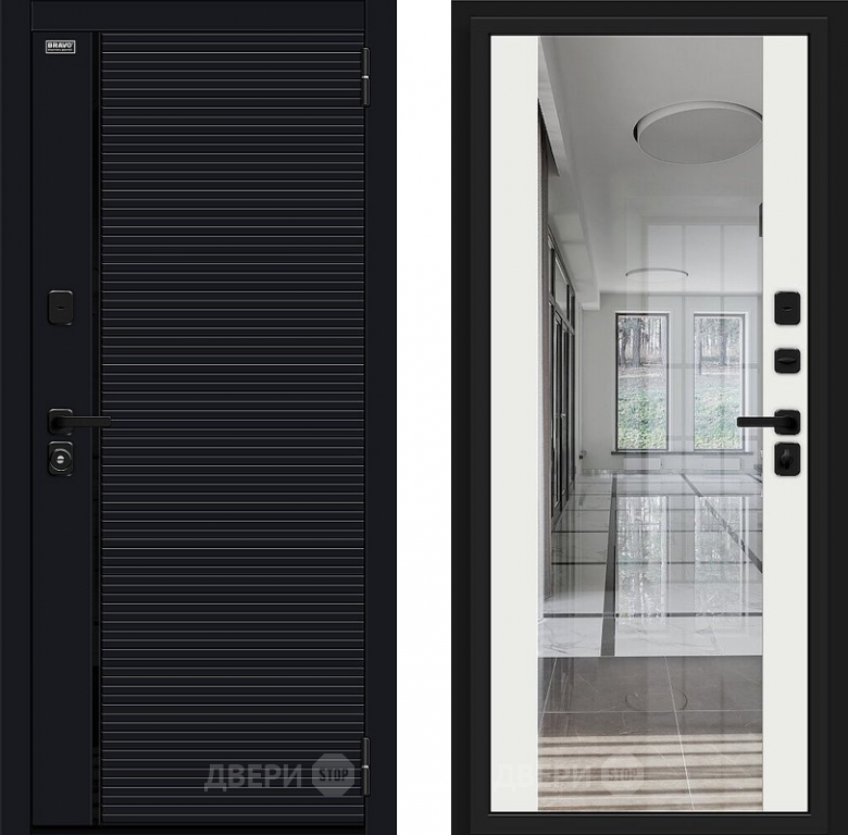 Входная металлическая Дверь Bravo Лайнер-3 Total Black/Off-white в Бронницах 860х2050 мм