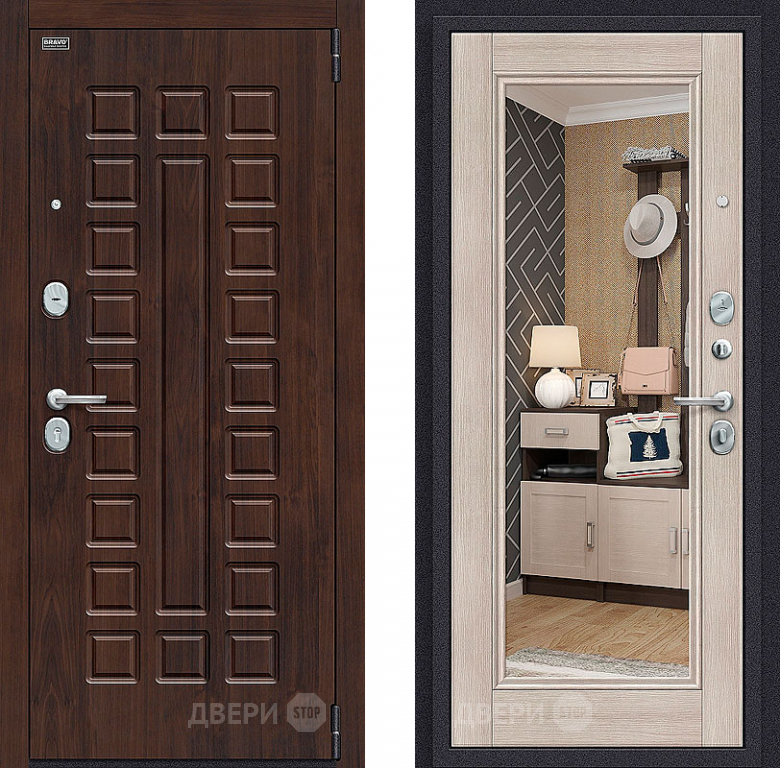 Входная металлическая Дверь Bravo Оптим Урбан с зеркалом Cappuccino Veralinga в Бронницах 860х2050 мм