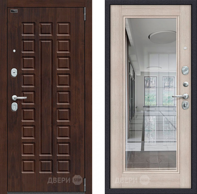 Входная металлическая Дверь Bravo Porta S-3 51/П61 с зеркалом Капучино в Бронницах 860х2050 мм