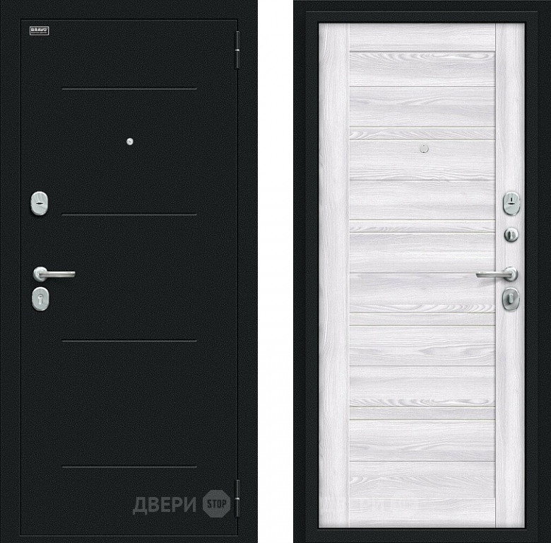 Входная металлическая Дверь Bravo Сити Kale Букле черное/Riviera Ice в Бронницах 860х2050 мм
