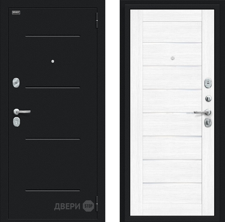 Входная металлическая Дверь Bravo Техно Букле черное/Snow Melinga в Бронницах 860х2050 мм