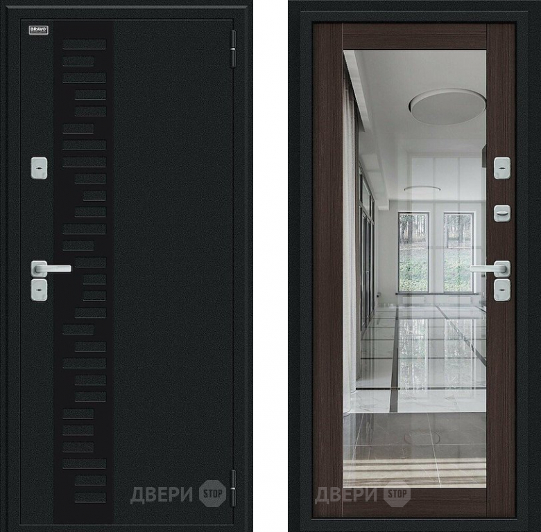 Входная металлическая Дверь Bravo Thermo Флэш Декор Букле черное/Wenge Veralinga в Бронницах 860х2050 мм