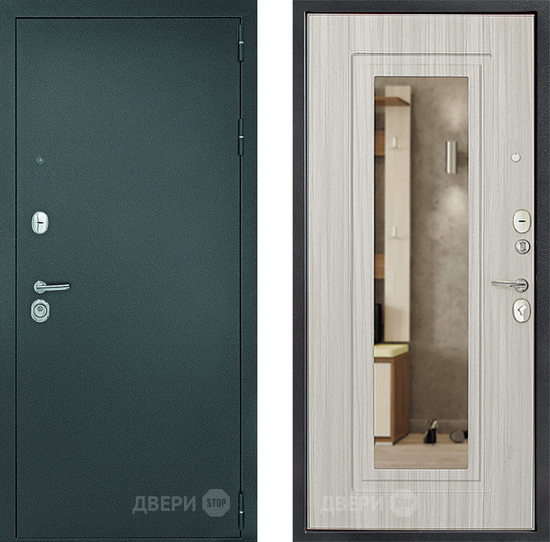 Входная металлическая Дверь Дверной Континент Рубикон Серебро Зеркало Сандал в Бронницах 860х2050 мм