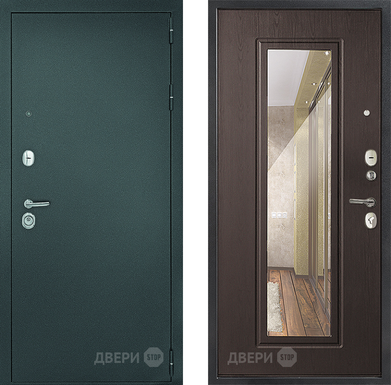 Входная металлическая Дверь Дверной Континент Рубикон Серебро Зеркало Венге в Бронницах 860х2050 мм