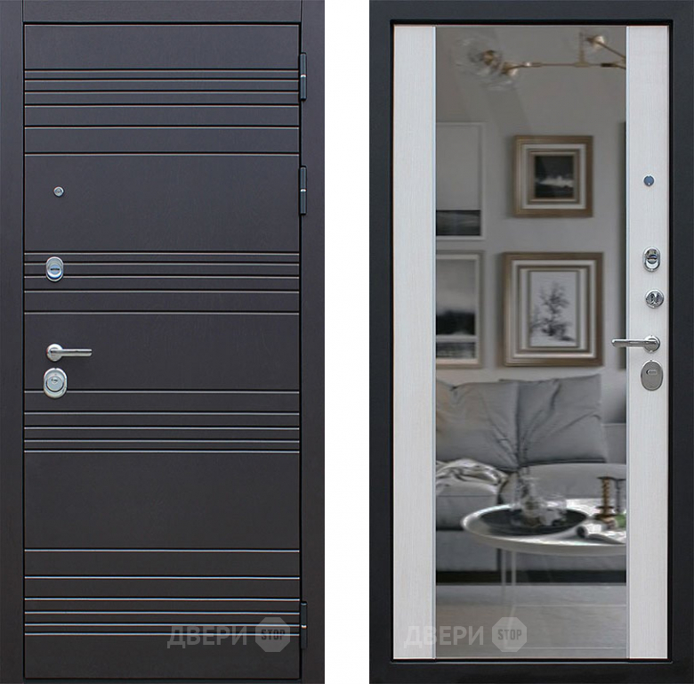 Входная металлическая Дверь АСД Дуэт с зеркалом Лиственница белая в Бронницах 860х2050 мм