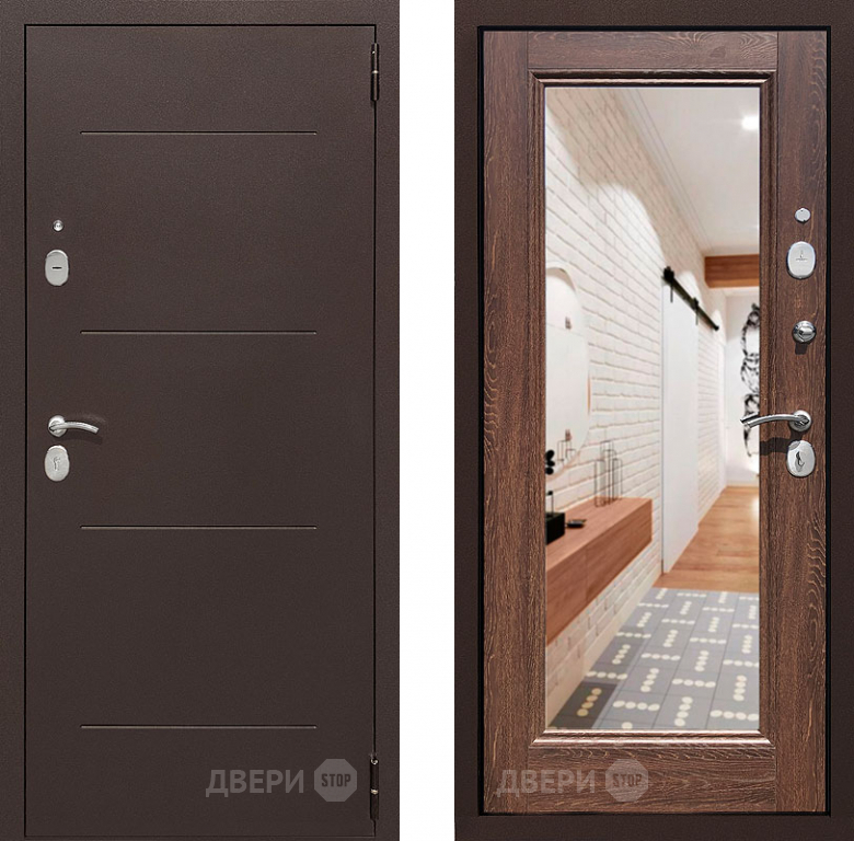 Входная металлическая Дверь Престиж 100 с зеркалом Медь/Дуб филадельфия коньяк в Бронницах 860х2050 мм