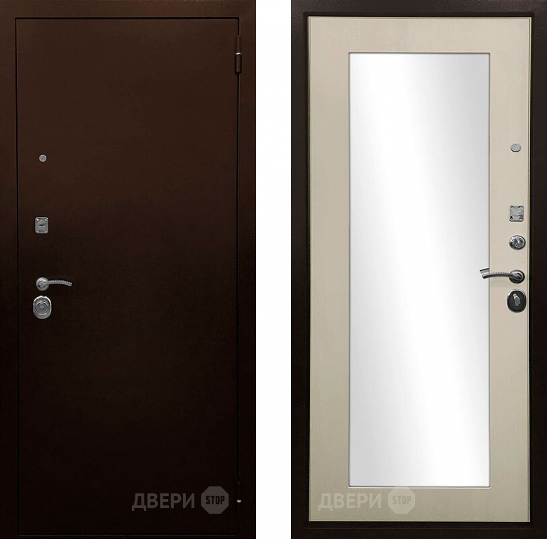 Входная металлическая Дверь Ратибор Оптима 3К зеркало Лиственница беж в Бронницах 860х2050 мм