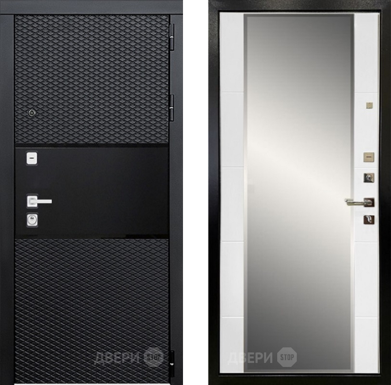 Входная металлическая Дверь Ратибор Прима 3К с зеркалом Белый матовый в Бронницах 860х2050 мм