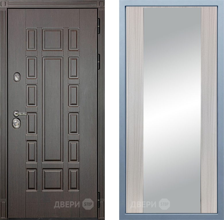 Входная Дверь Дива МХ-53 STR Д-15 Зеркало Сандал белый 860x2050 мм