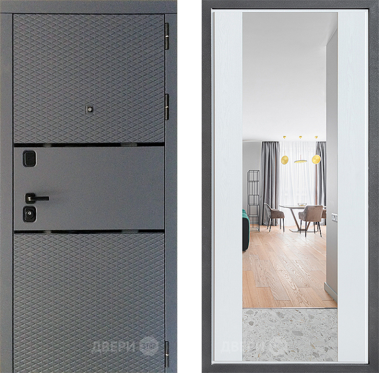 Входная Дверь Дверной континент Диамант Дизайн ФЛЗ-1 Зеркало Белое дерево 860x2050 мм