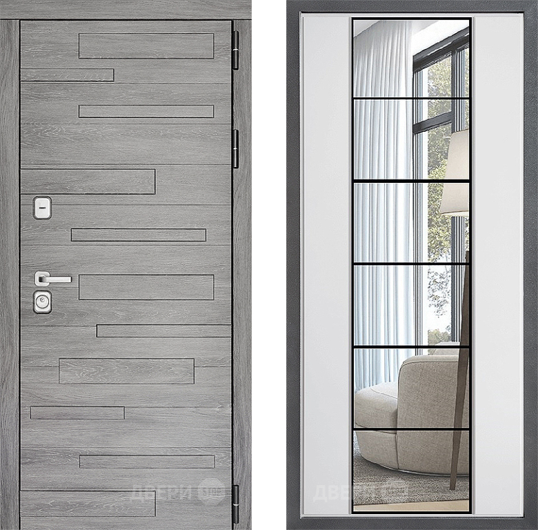 Входная Дверь Дверной континент ДК-10 ФЛЗ-2 Зеркало Белый софт 960x2050 мм