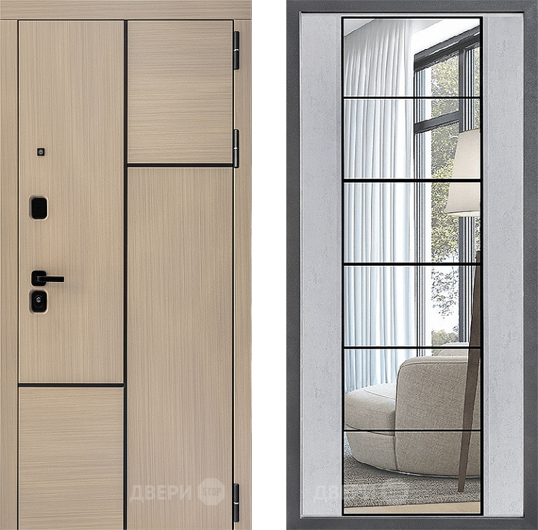 Входная Дверь Дверной континент ДК-14 ФЛЗ-2 Зеркало Бетон светлый 860x2050 мм