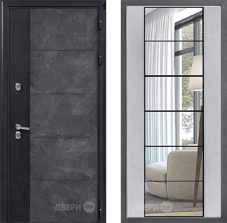 Входная Дверь Дверной континент ДК-15 Бетон ТЕРМО ФЛЗ-2 Зеркало Бетон светлый 860x2050 мм