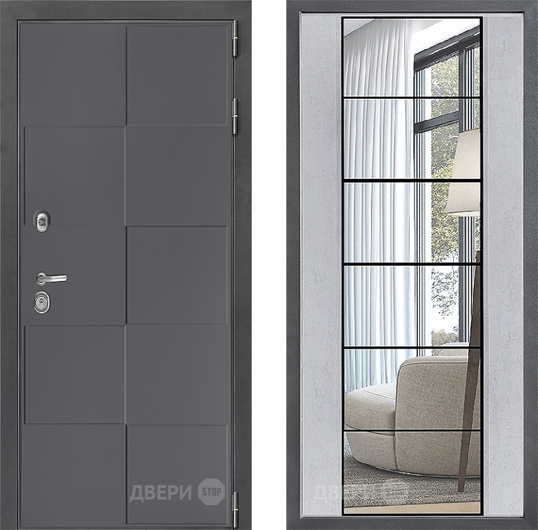 Входная Дверь Дверной континент ДК-3/606 ФЛЗ-2 Зеркало Бетон светлый 960x2050 мм