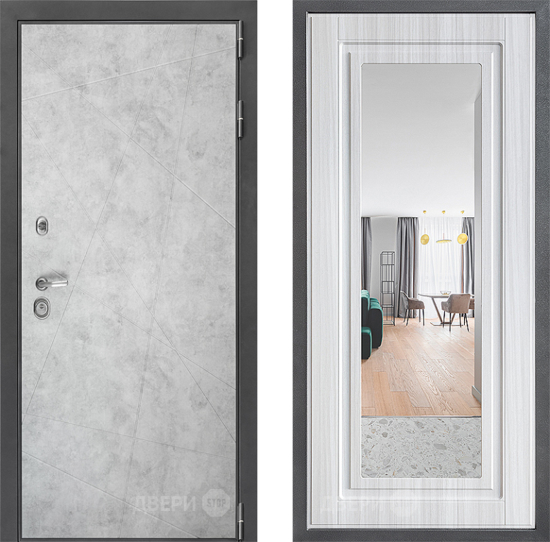 Входная Дверь Дверной континент ДК-3/743 ФЛЗ Зеркало Сандал белый 860x2050 мм