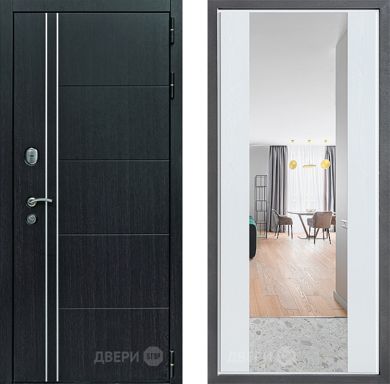 Входная Дверь Дверной континент Теплолюкс Дизайн ФЛЗ-1 Зеркало Белое дерево 960x2050 мм