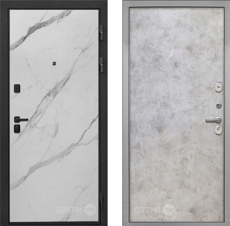 Входная Дверь Интекрон (INTECRON) Профит Black Мрамор Арктик Гладкая Мрамор светлый 860x2050 мм