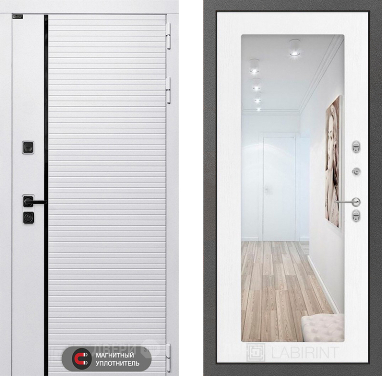 Входная Дверь Лабиринт (LABIRINT) Royal Зеркало 18 Белое дерево 860x2050 мм