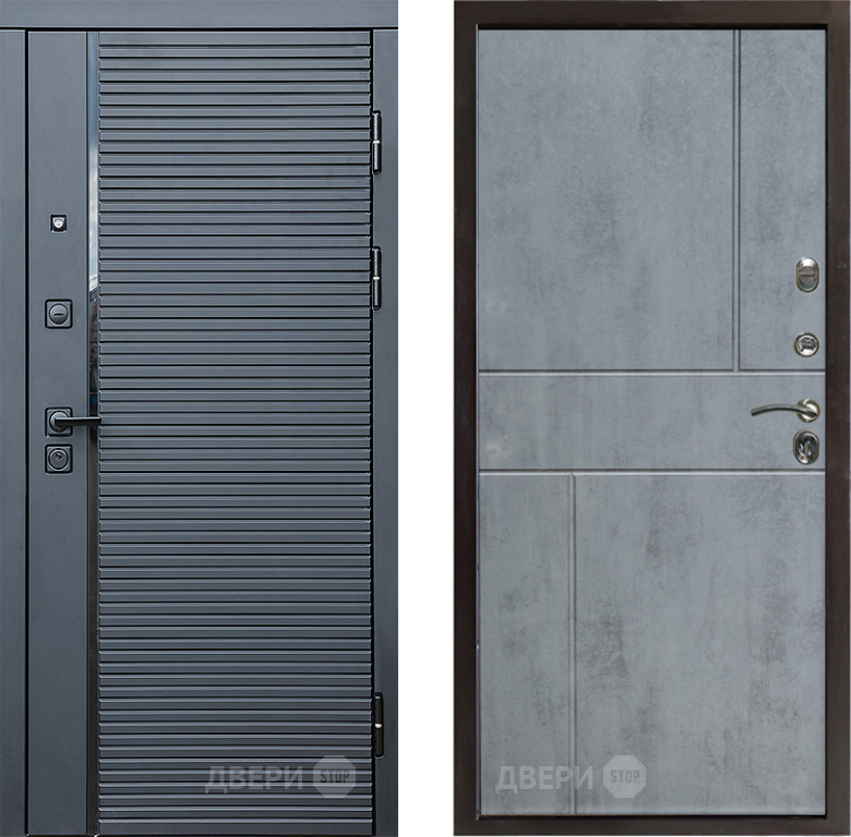 Входная Дверь Престиж Черная Линия Горизонт Бетон темный 860x2050 мм