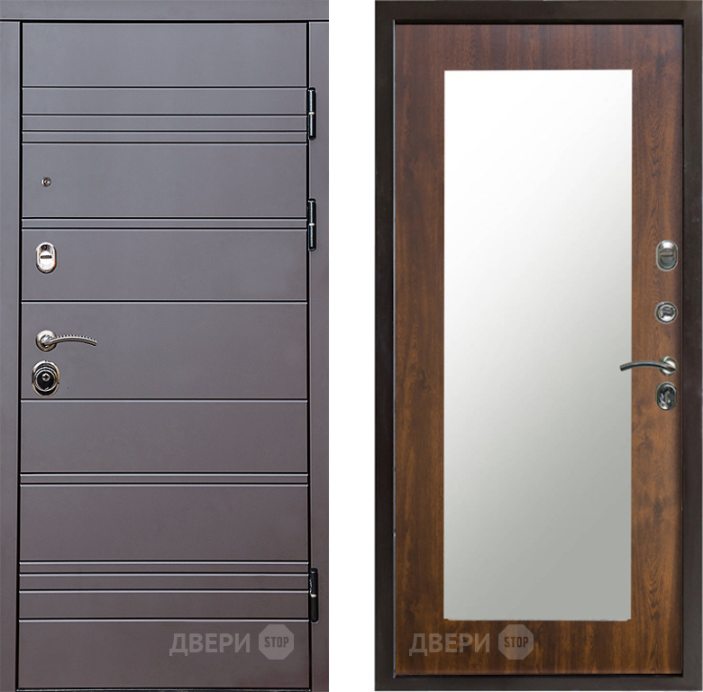 Входная Дверь Престиж Линия Браун Зеркло Пастораль Дуб 960x2050 мм