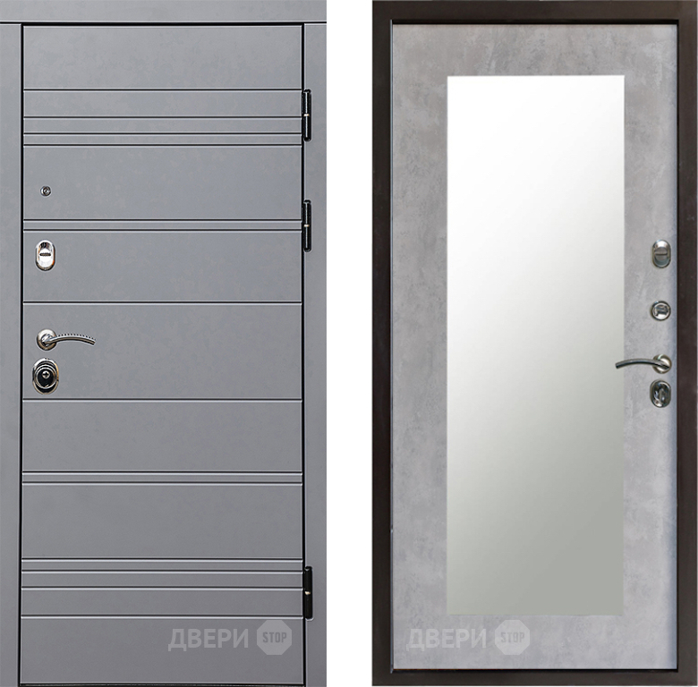 Входная Дверь Престиж Линия Грэй Зеркло Пастораль Бетон светлый 860x2050 мм