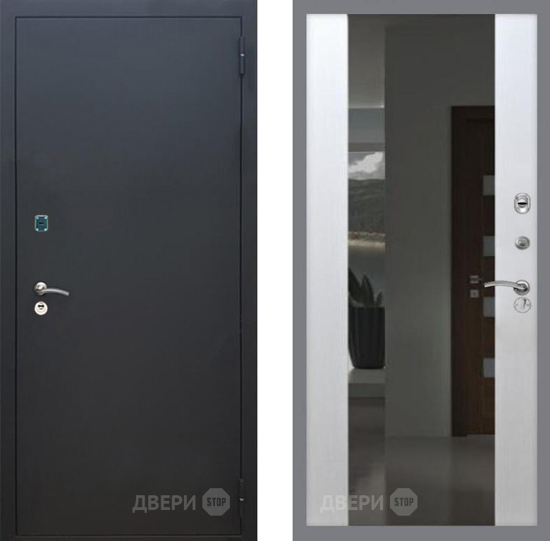 Входная Дверь Рекс (REX) 1A Черный Муар СБ-16 Зеркало Белый ясень 860x2050 мм