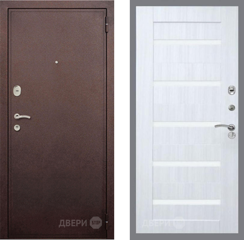 Входная Дверь Рекс (REX) 2 Медный Антик СБ-14 стекло белое Сандал белый 860x2050 мм