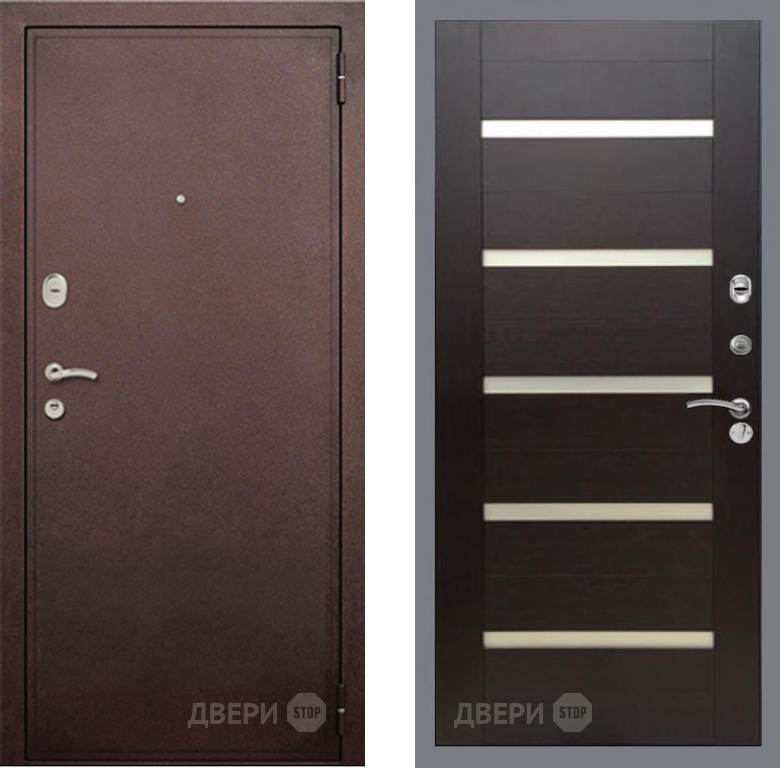Входная Дверь Рекс (REX) 2 Медный Антик СБ-14 стекло белое венге поперечный 860x2050 мм