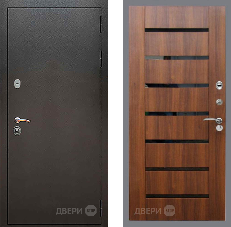 Входная Дверь Рекс (REX) 5 Серебро Антик СБ-14 стекло черное Орех бренди 860x2050 мм
