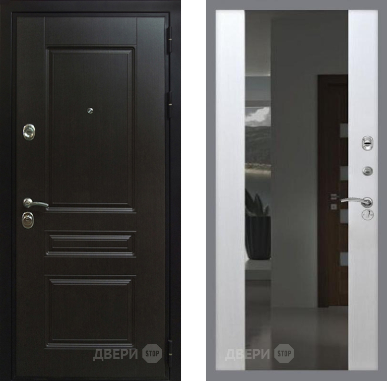 Входная Дверь Рекс (REX) Премиум-Н СБ-16 Зеркало Белый ясень 860x2050 мм