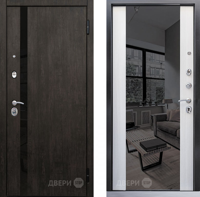Входная металлическая Дверь Премьер зеркало тиковое дерево/лиственница белая в Бронницах 860х2050 мм