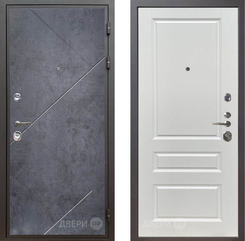 Входная Дверь Шелтер (SHELTER) Комфорт Бетон урбан индиго 1 Белый ясень 860x2050 мм