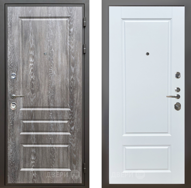 Входная Дверь Шелтер (SHELTER) Комфорт Дуб шале серебро 4 Белый матовый 860x2050 мм
