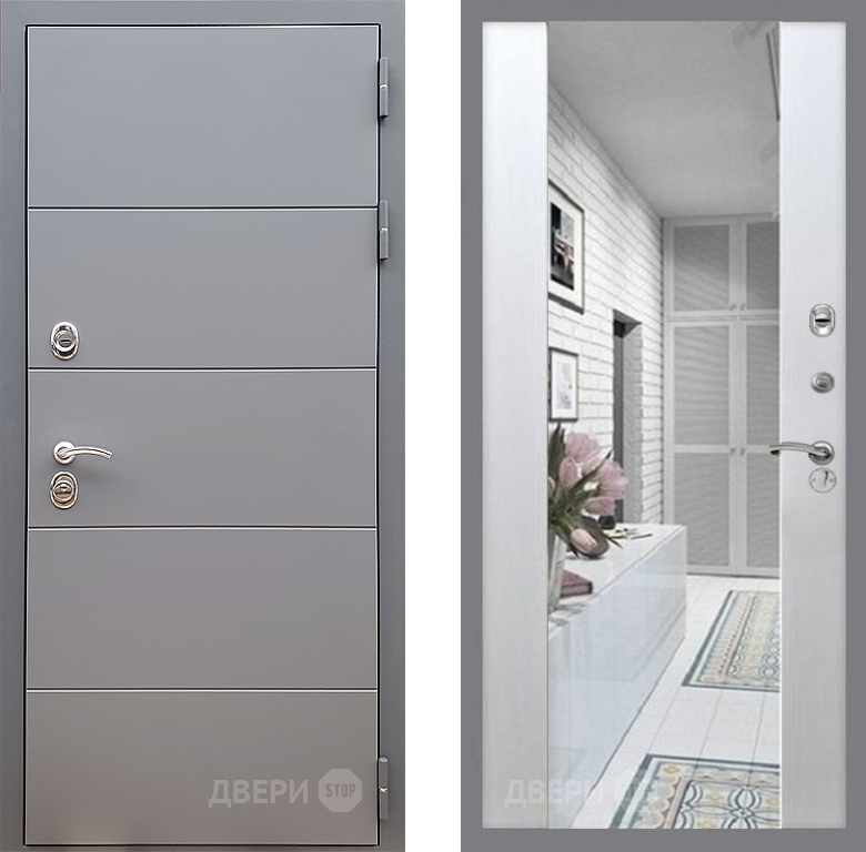 Входная Дверь Стоп АРТ ГРАФИТ Зеркало СБ-16 Лиственница беж 860x2050 мм