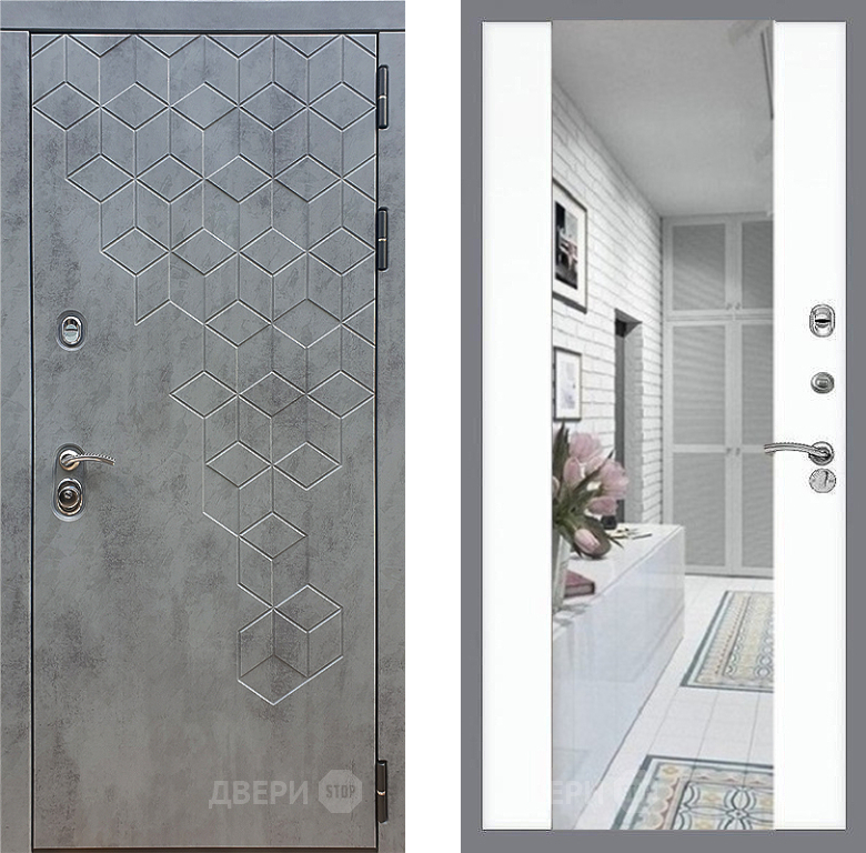 Входная Дверь Стоп БЕТОН Зеркало СБ-16 Силк Сноу 860x2050 мм