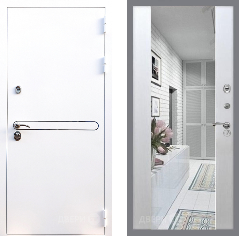 Входная Дверь Стоп Лайн Вайт Зеркало СБ-16 Лиственница беж 960x2050 мм