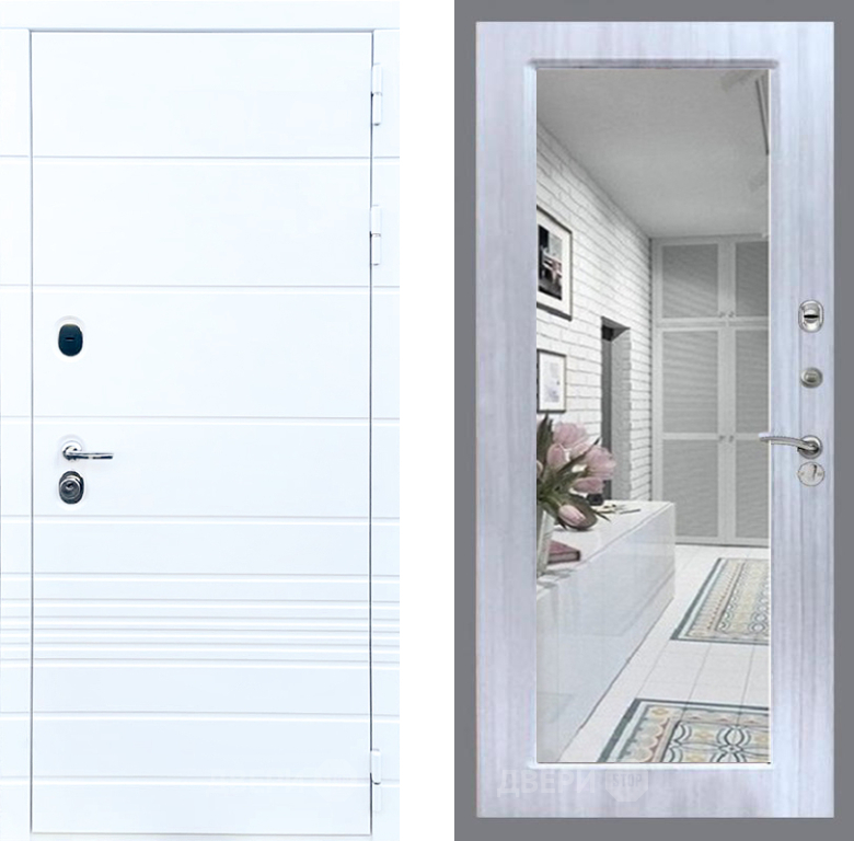 Входная Дверь Стоп ТРЕНДО Зеркало Сандал белый 860x2050 мм