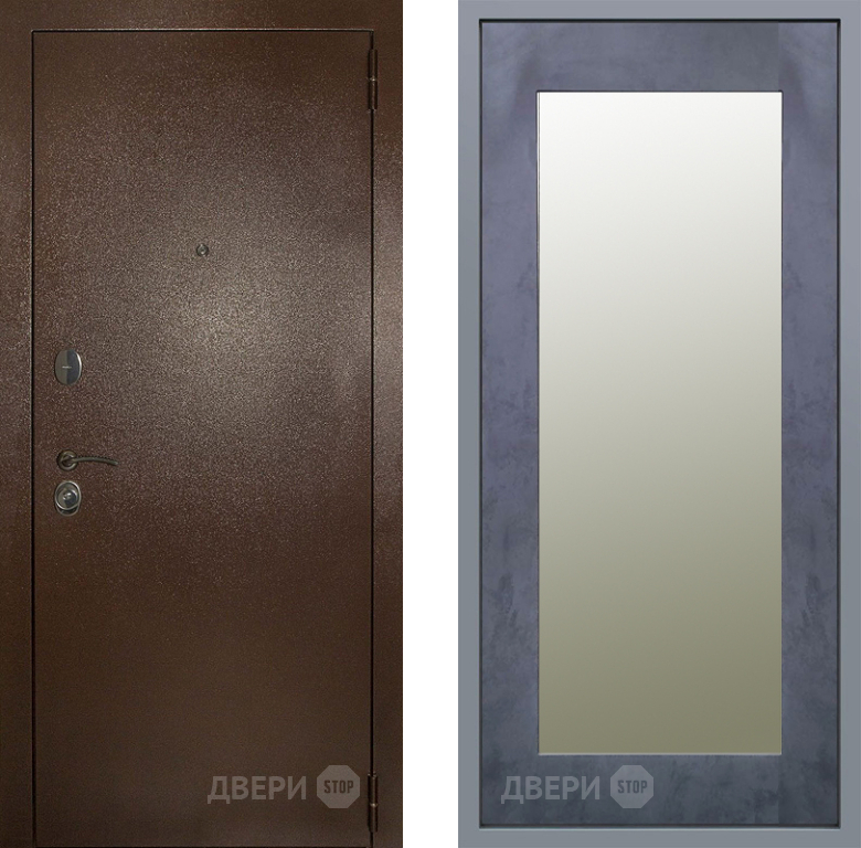 Входная Дверь Заводские двери Эталон 3к антик медь Зеркало Модерн Бетон темный 860x2050 мм