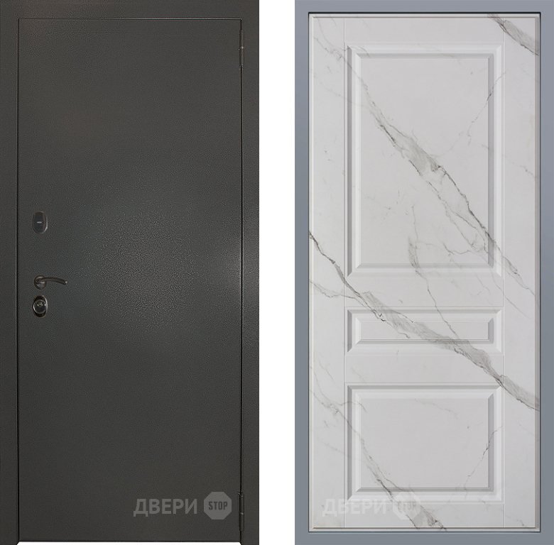 Входная Дверь Заводские двери Эталон 3к антик серебро Стокгольм Мрамор белый 960x2050 мм