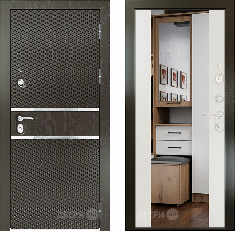 Входная металлическая Райтвер Плаза Шоколад с зеркалом Белый матовый в Бронницах 860х2050 мм