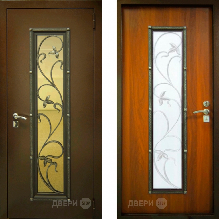 Заводские двери с ковкой и стеклом Лоза в Бронницах 860х2050 мм